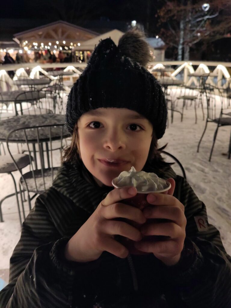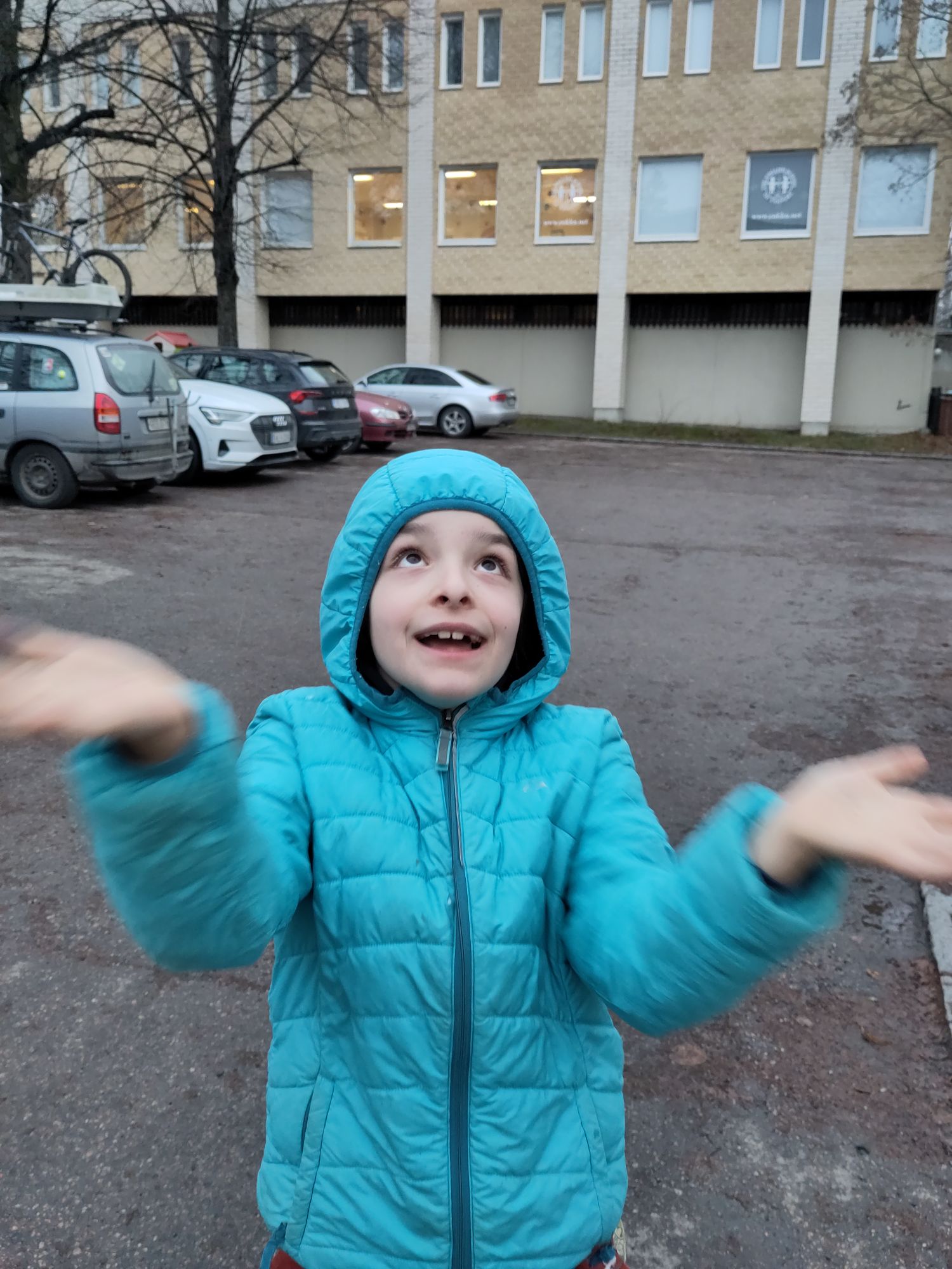 Après cet accueil de 30 minutes, une visite en finnois de la fac est organisée mais nous n’allons rien comprendre donc nous filons dans mon bureau avec Achille car j’ai deux visios à suivre. Achille programme une carte microbit de son côté, pour faire des motifs sur un petit écran (merci pour le conseil Olivier). Nous allons ensuite au Konetalo (bâtiment des machines) pour une démonstration de robots : une tête parlante basée sur chatgpt avec un visage changeant rétro-éclairé, un tronc d’humanoïde (technologie française), et un robot spot américain de la taille d’un gros chien, qu’Achille peut piloter un moment. Les démos sont clairement à l’état de l’art, ce qui les rend particulièrement attrayantes. Nous déjeunons à la cantine puis repartons après le déjeuner pour que cela ne soit pas trop long pour Achille. À la cantine, l’employée à la caisse a sa fille sur ses genoux. Achille garde depuis un très bon souvenir de cette journée et a dit à notre départ de la fac que c’était le plus beau jour de sa vie, ce qui est significatif même si Achille utilise assez souvent cette expression. Comme souvent en Finlande, cette journée nationale montre que les enfants sont considérés comme des citoyens à part entière, et même un peu plus que cela, avec leurs vies, leurs avis et leurs envies, et que les accueillir à grande échelle dans le milieu professionnel mérite largement une petite perte temporaire de productivité.