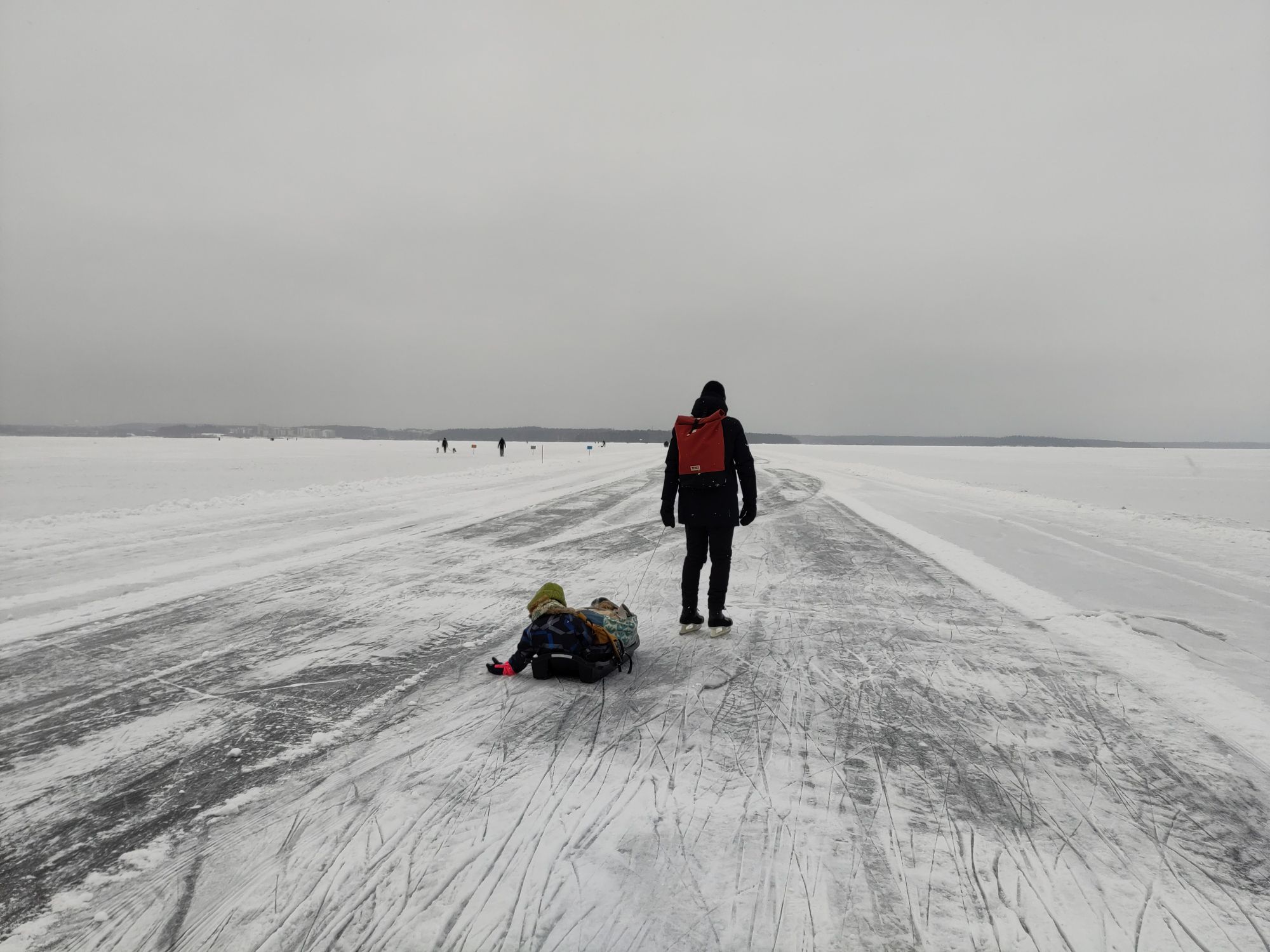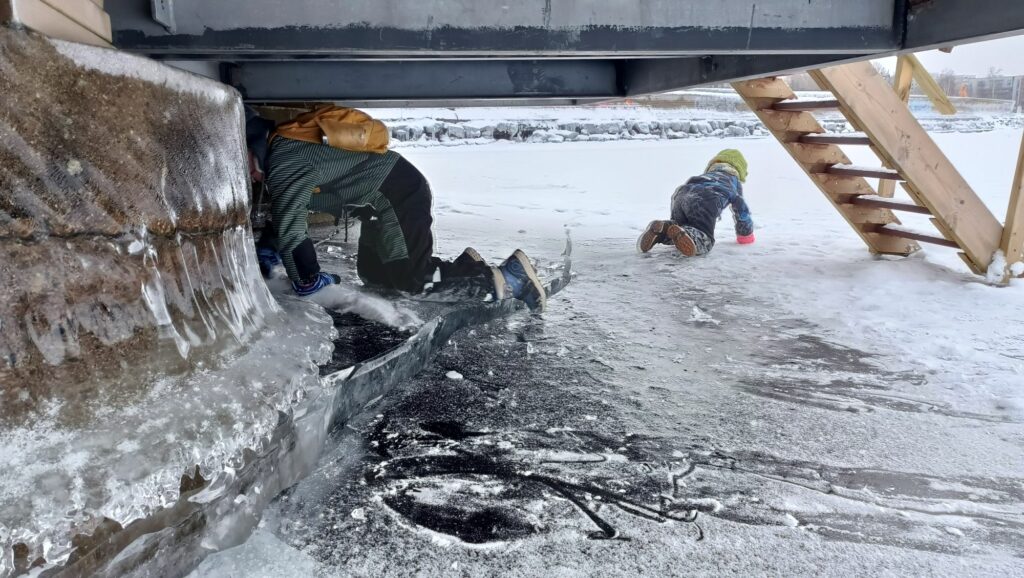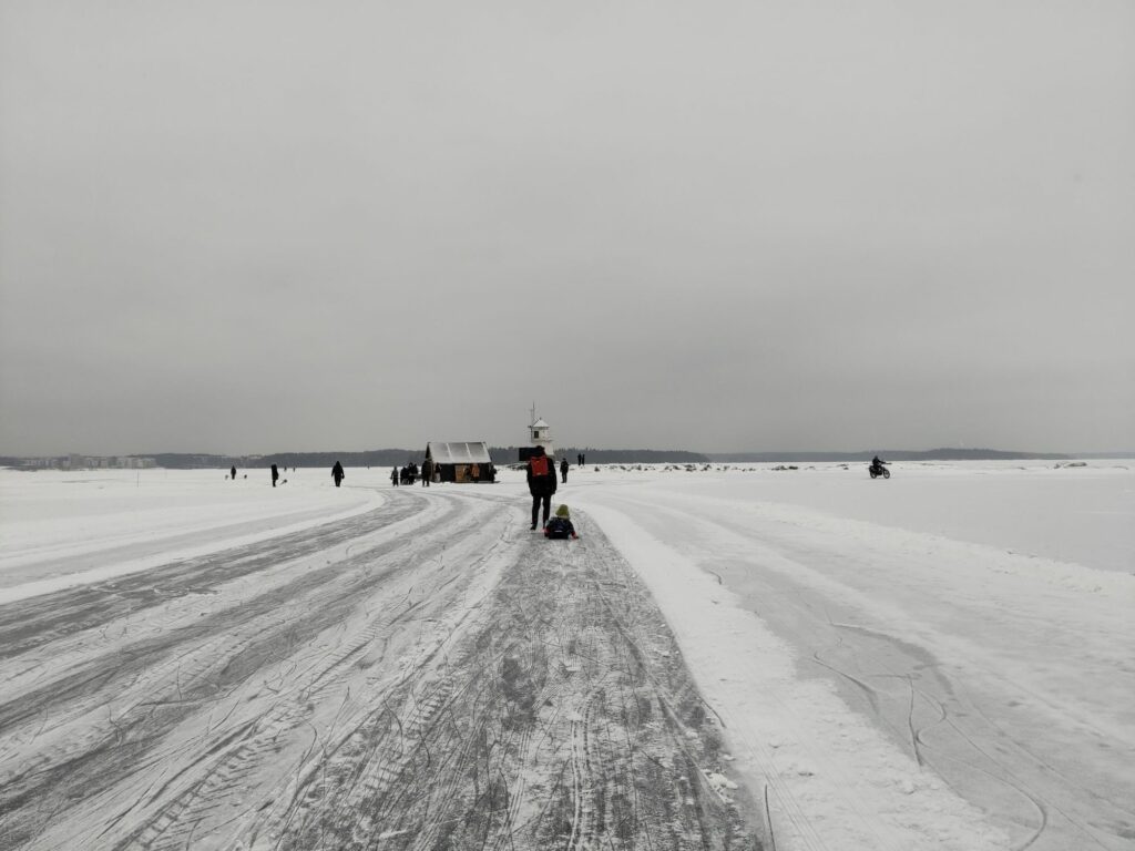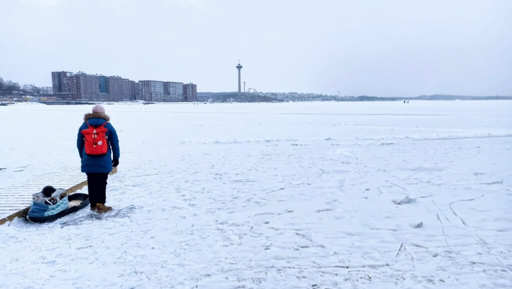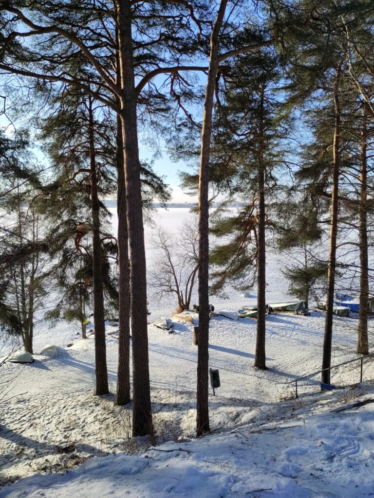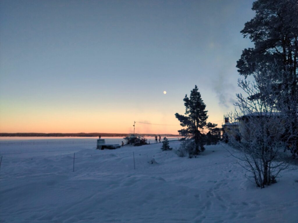Aujourd’hui c’est samedi, il neige à petits flocons, il fait -10°C. L’ambiance est paisible dehors, contrairement à l’intérieur avec les chamailleries de la marmaille, alors nous sommes allés patiner sur le lac Näsijärvi. Une nouvelle expérience finlandaise grandiose!