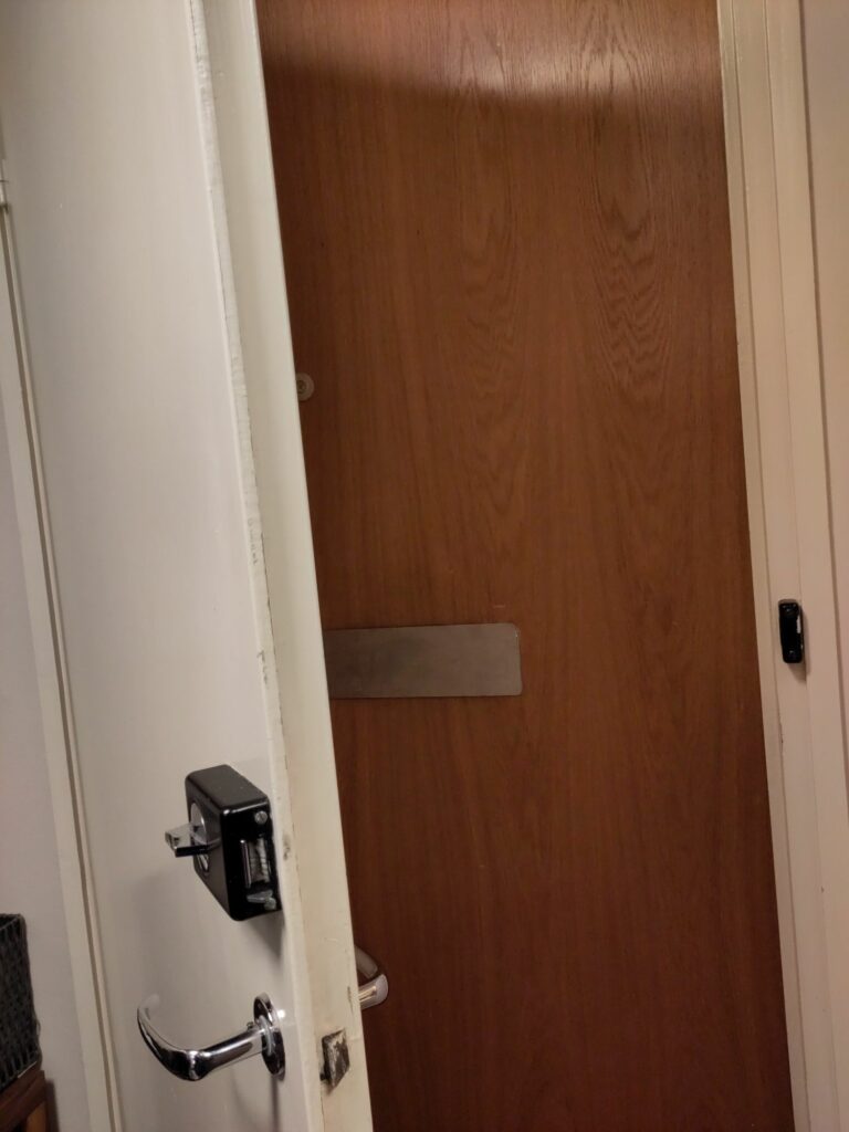 La boîte aux lettres est percée dans la première porte et le courrier tombe entre les deux.