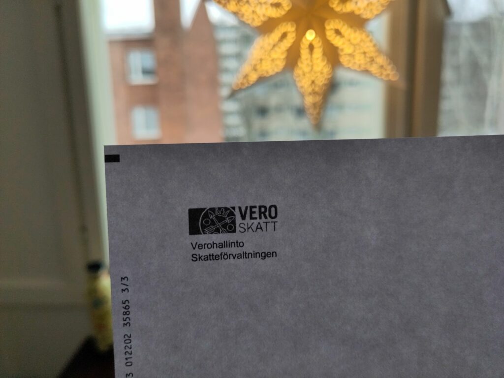 Depuis hier nous sommes un peu plus Finlandais. Par la règle dite des 183 Jours (365 n’étant pas divisible par 2), nous sommes maintenant redevables des impôts sur le revenu en Finlande. Le service s’appelle Vero pour les intimes,Verohallinto pour les autres, ça veut dire administration fiscale. De nouvelles tribulations administratives en perspective…