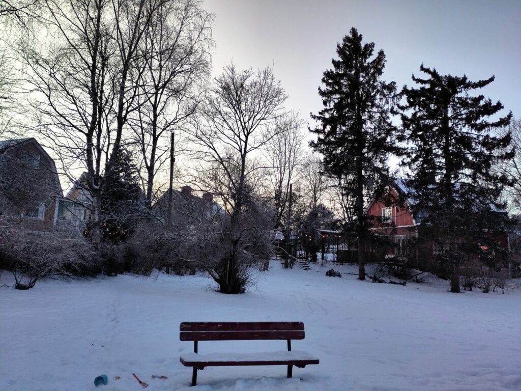 Nous sommes loin de nous lasser de la beauté de ces étendues blanches à perte de vue, des sapins sous la neige, des bouleaux gelés, du feu de camp et des saucisses crâmées au goût de liberté, de la luge pour transporter Solal et les patins à glace, du soleil de fin de journée qui rosit le ciel, et de la neige qui tombe lentement, alors en voilà encore quelques photos.