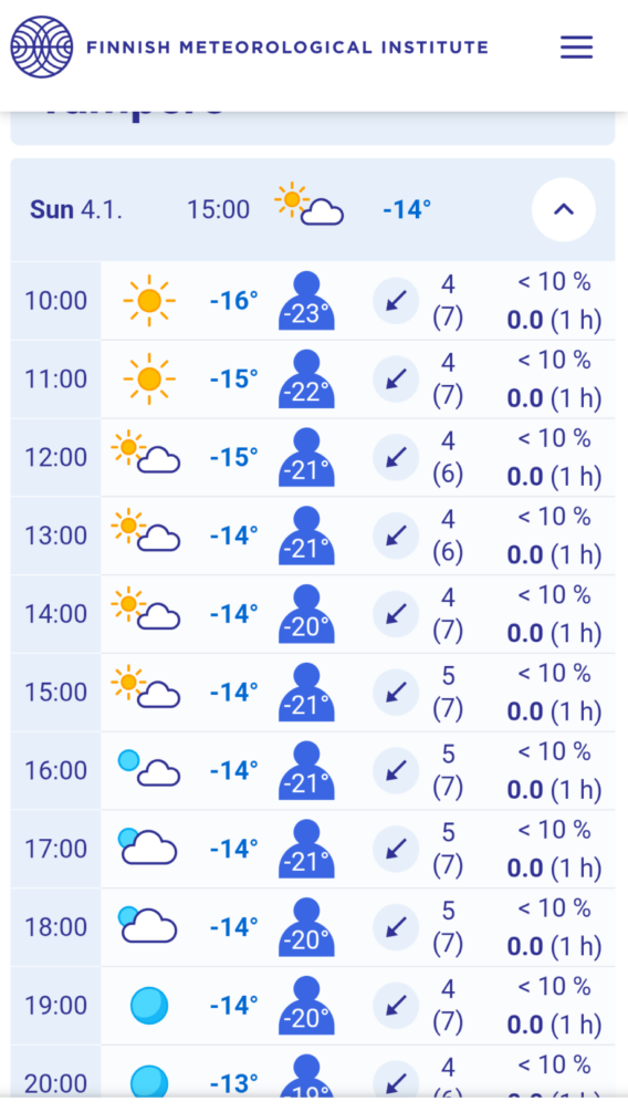 Hier, Maxime revient du travail en disant: d’après un collègue, c’est un mois historique! Il y a eu six minutes de soleil à Helsinki et zéro à Tampere depuis un mois! L’avantage c’est qu’on nous a tellement dit que la période allait être horrible d’un point de vue luminosité et météo que tout nous paraissait normal.