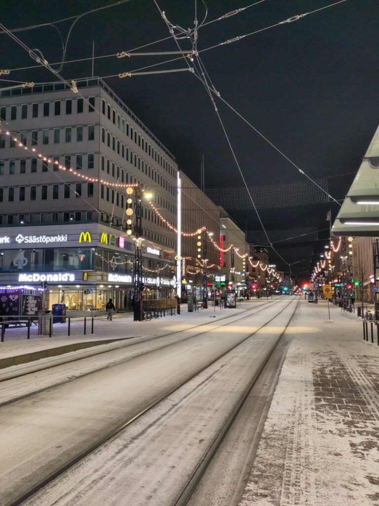 La météo était donc relativement pourrie mais Pori ne l’était pas (hahaha), on a visité deux rues de nuit qui nous ont parues très jolies et le méga parc avec le bateau pirate, la structure Angry birds et des carillons de toutes les tailles qui étaient même accordés. En rentrant le soir, on a mis les bougies à la fenêtre et regardé le serrage de mains en commentant un peu les robes et les costumes. 🇫🇮🕯️🕯️🇫🇮