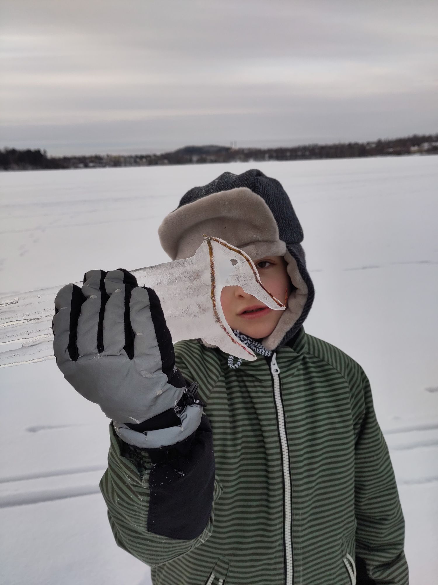 Tout est blanc quand on arrive, on se dit que c’est chouette de revenir dans ces conditions. Le lendemain le soleil brille, la période d’automne pluvieuse et sombre est visiblement derrière nous. Suite en photos de ces deux derniers jours à savourer la neige, le soleil, les glissades en luge, la vapeur d’eau qui s’échappe du lac en train de geler et les premiers pas sur celui qui l’est déjà… Magnifique expérience que celle du froid sec à -16°C avec le son des blocs de glace  qui s’entrechoquent, portés par le courant.
