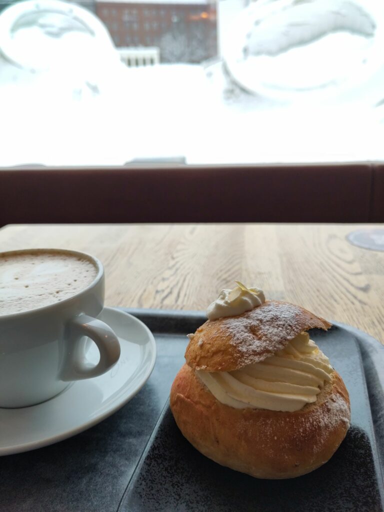 La « laskiaispulla », la brioche du mardi gras, est une brioche à la cardamome fourrée avec une crème d’amande ou de la confiture et de la crème fouettée.