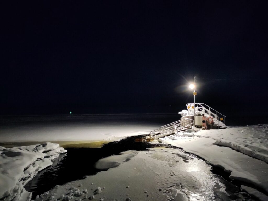Le retour vers Tampere s’est fait le lendemain, sous le soleil, avec un crochet par le bord de la Baltique. La mer était gelées, et il y avait de nombreux pêcheurs dessus.