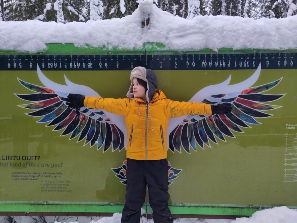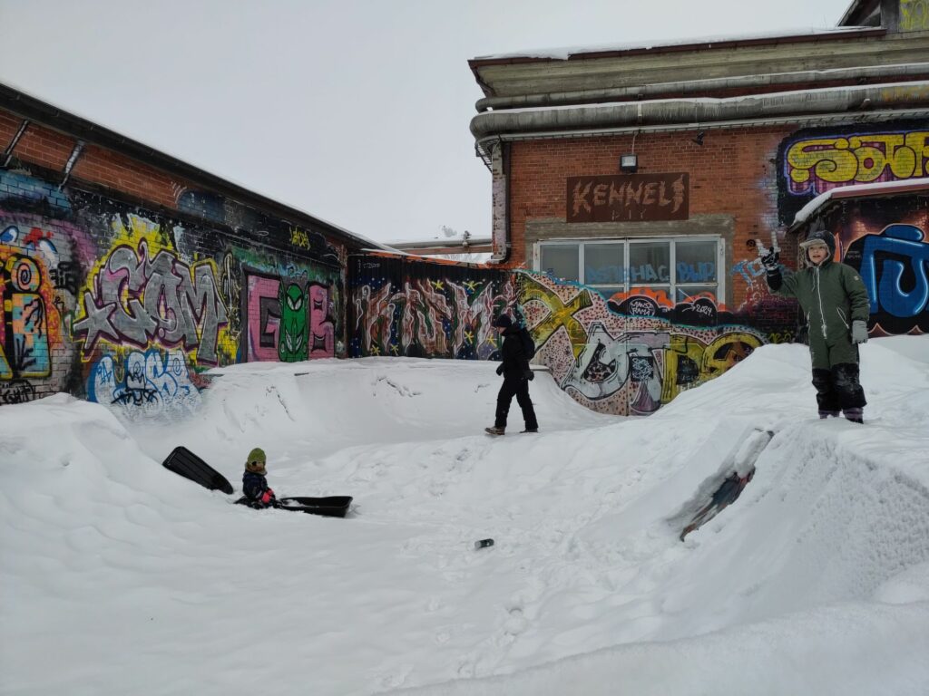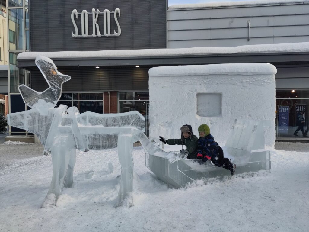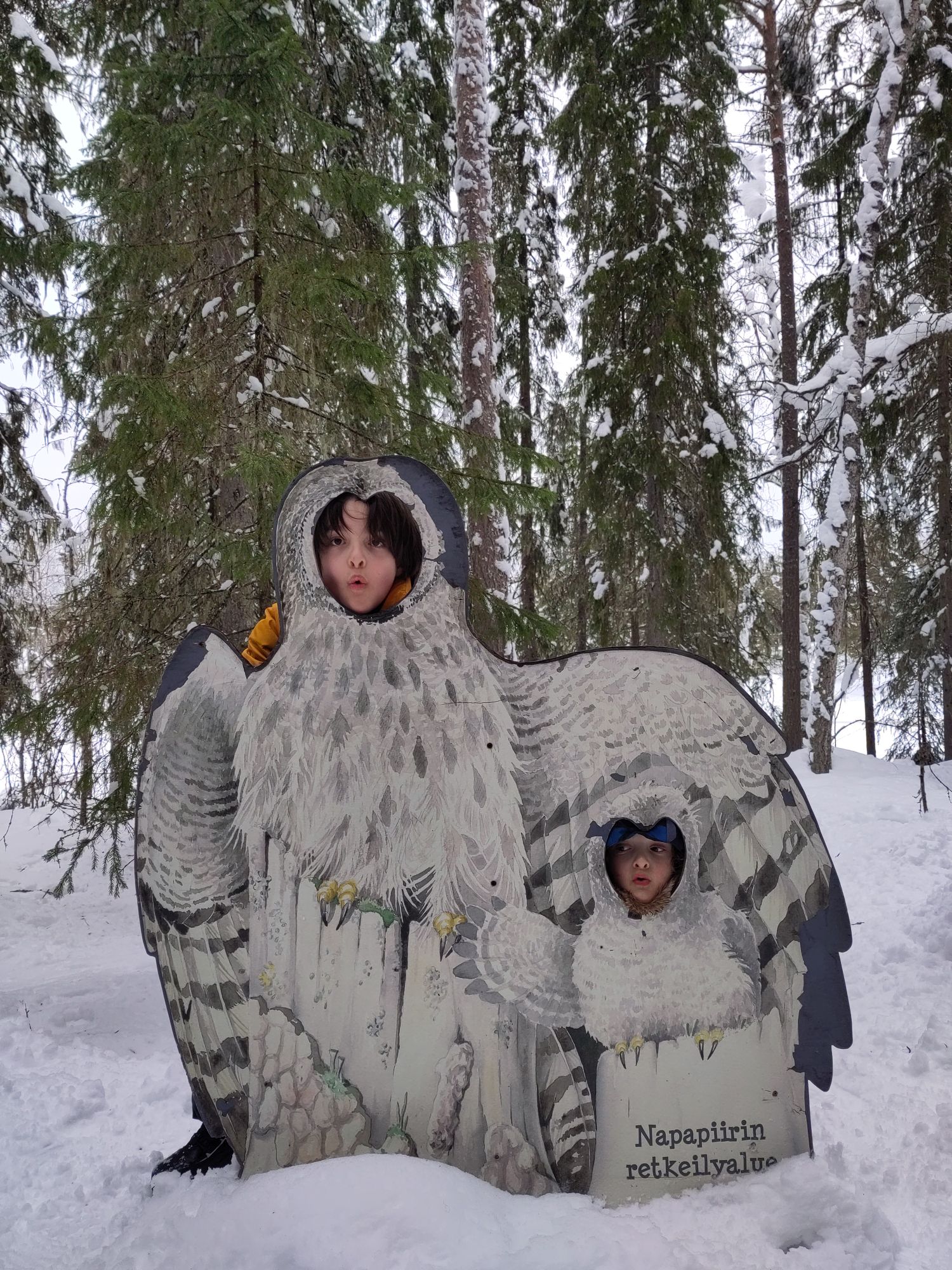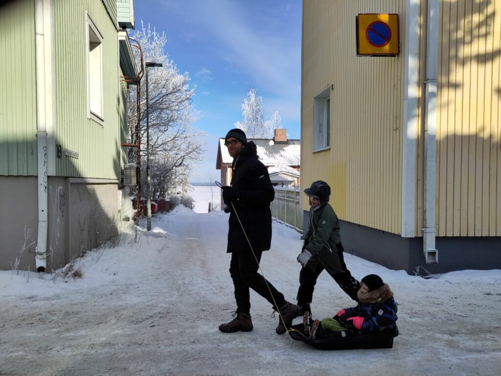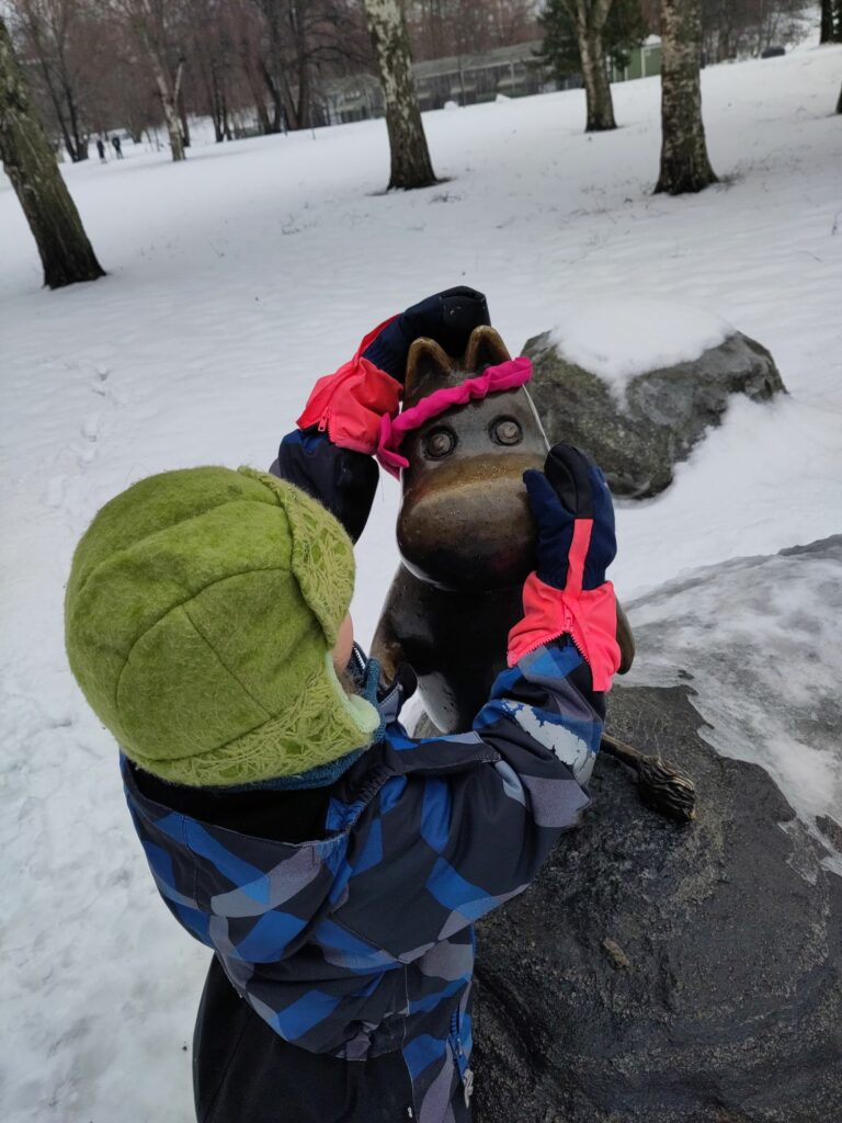Et puis pour finir, la semaine s’est déroulée sous le signe des promenades pour faire découvrir la ville, le lac gelé, la piscine, les munkki, notre rythme de vie et, il faut savoir s’envoyer des fleurs, mes super-pouvoirs de maman qui jongle entre autres avec les humeurs des enfants qui préfèreraient aller glandouiller à l’appartement plutôt que de finir la journée à faire de la luge dans un parc (les pauvres).