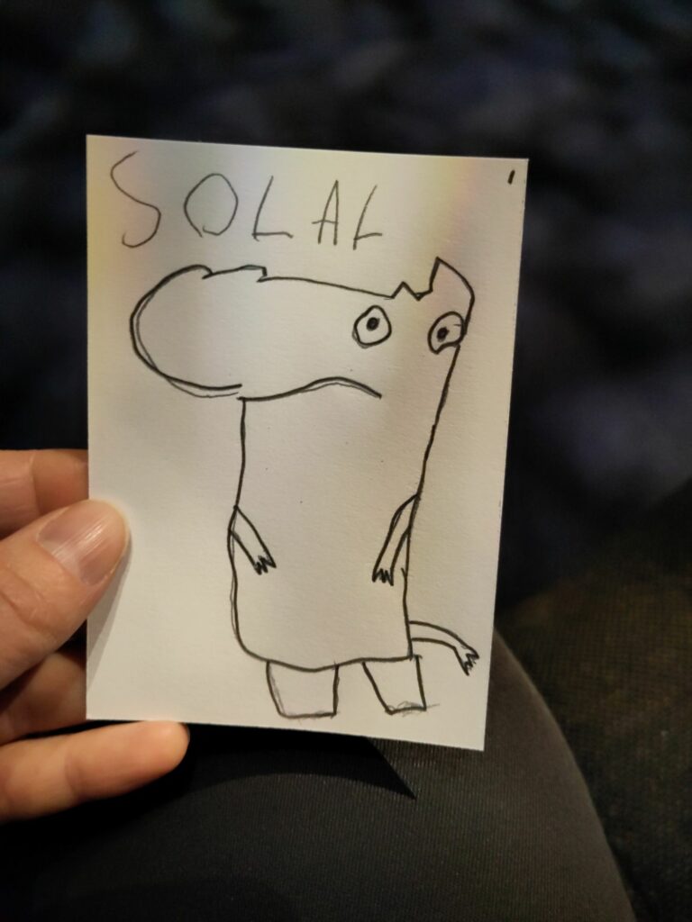 Le soir, nous sommes allés griller des saucisses dans la forêt en pleine nuit. Marcher dans l’obscurité et dans le silence était un moment à la fois un peu effrayant -qui n’a pas peur des bêtes féroces tapies dans le noir ?- et magique. Après notre festin, nous avons attendu une aurore boréale. J’avais écrit « les » puis je me suis ravisée, une ce serait déjà bien. Derrière les nuages, nous avons clairement distingué du rose qui est apparu puis a disparu. Ce n’était pas un réverbère, ni le phare d’une voiture, maintenant on sait les reconnaître. Donc voilà, on peut cocher la case « voir une aurore boréale en Laponie ». Je passe la partie où après ça, on a roulé encore deux heures pour tenter d’en voir une mieux, ou quand on a réessayé le lendemain, et qu’il y a bien eu des aurores boréales, mais après notre retour, quand on dormait.