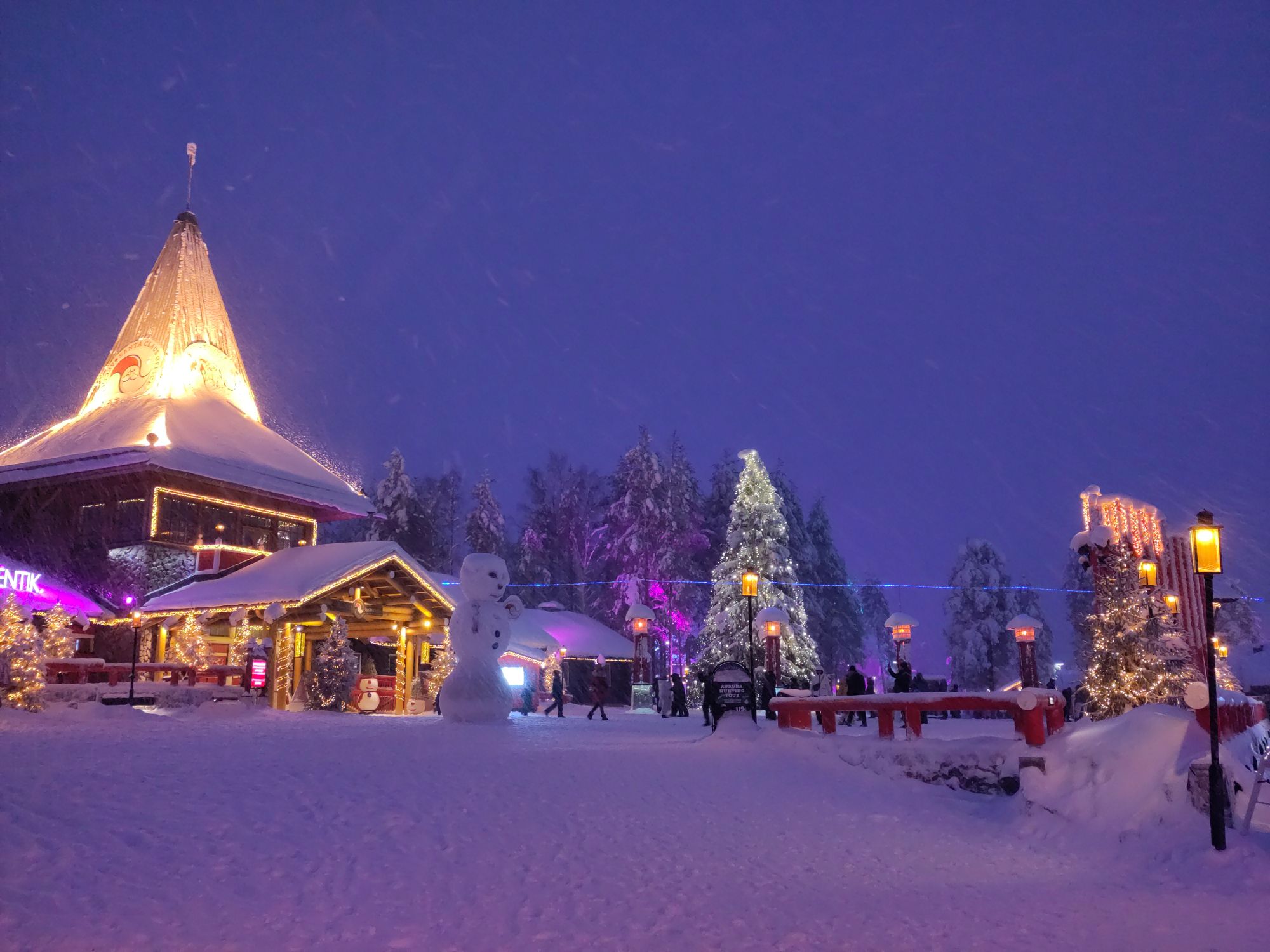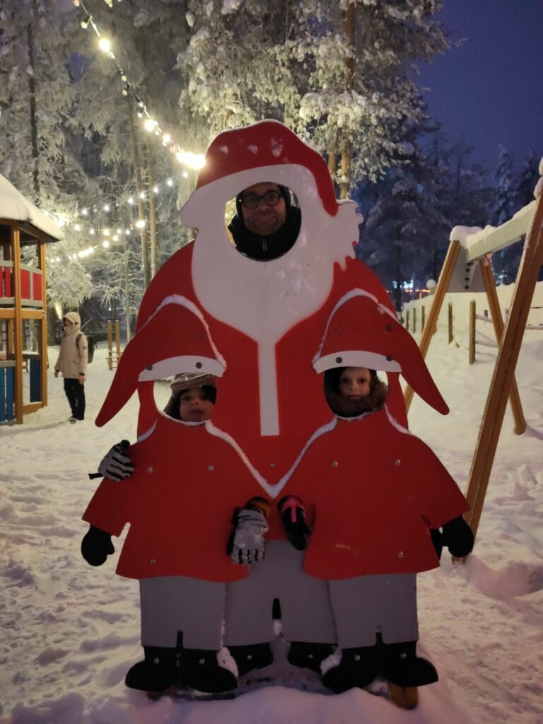 En fin de journée, Maxime nous a rejoint pour aller au village du Père Noël. Le fameux élément incontournable qu’on trouve dans tous les guides de Finlande et qui vend l’endroit comme un concentré de Laponie. On a fait la queue pour aller se faire prendre en photo avec Santa, tout en sachant que de toute manière on ne l’achèterait pas. Quoique vue la mine circonspecte de Solal sur tous les clichés, on a quand même hésité.