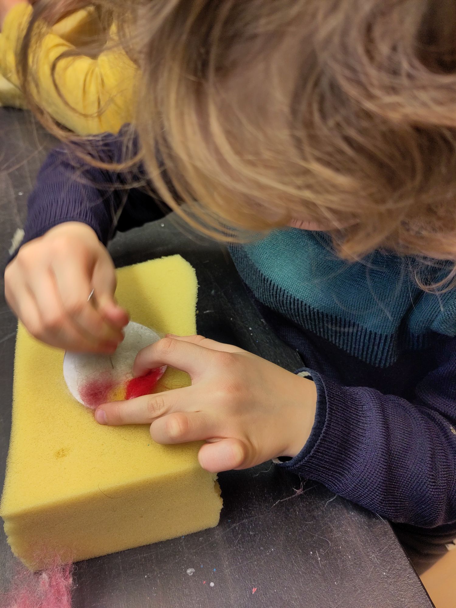 Pour finir la journée, nous sommes allés au musée d’art de Korundi, où nous avons vu une exposition de peintures et participé à un atelier de laine cardée.