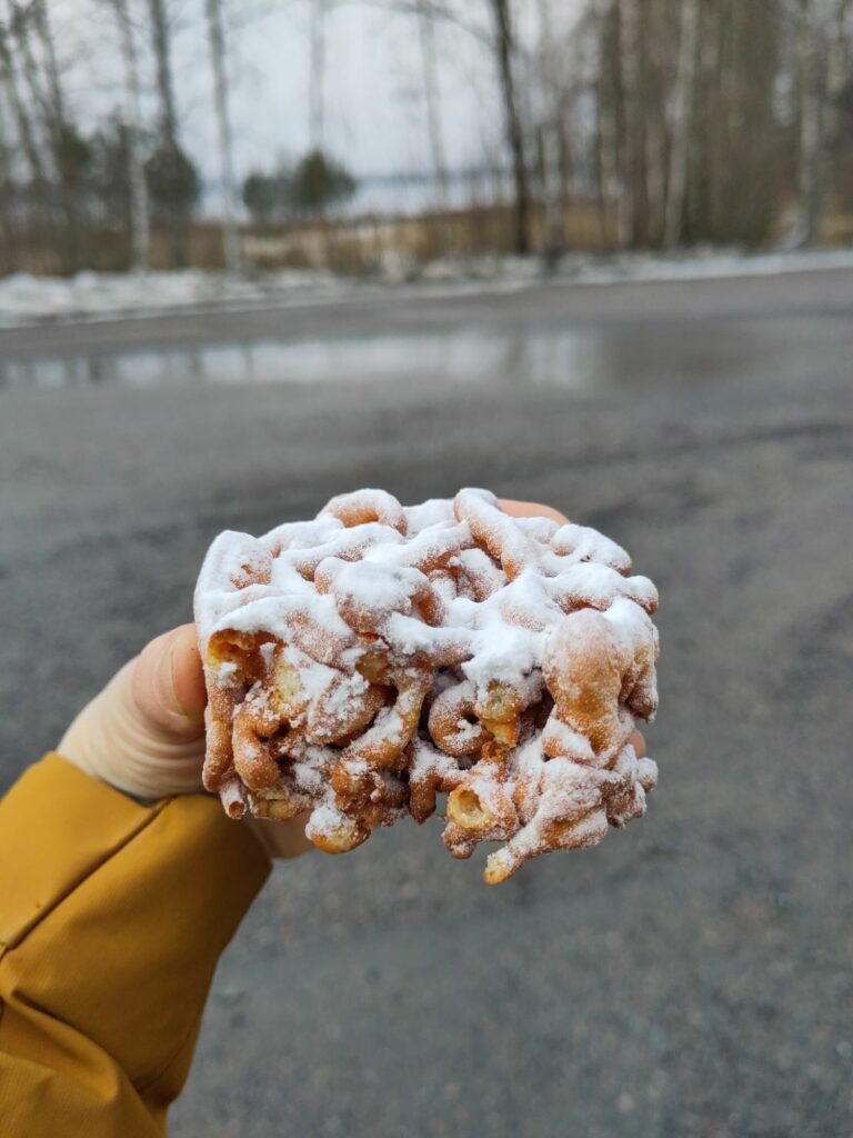 Cette petite chose bien croustillante était cependant fort gourmande, il s’agit d’un tippaleipä, ou beignet du 1er mai (quoi, déjà !?)