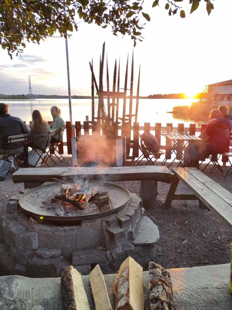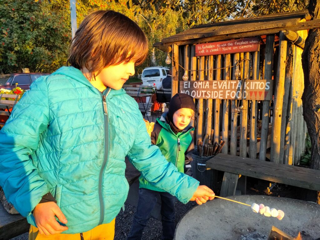 Franchement c’était génial ! Pendant que Maxime serrait la main de l’Ambassadrice de France Raja Rabia, nous on grillait des saucisses au bord de la Baltique. Parce que ce petit café, ouvert tous les jours de l’année jusqu’à 21h, propose entre autres, des saucisses et des chamallows à griller au-dessus des flammes (quand on ne sait pas comment s’y prendre et qu’on fait brûler sa saucisse) et des braises (quand un monsieur nous explique comment poser la tige sur le rebord du barbecue et attendre que la saucisse se fende en un auguste « pof » de fin de cuisson).