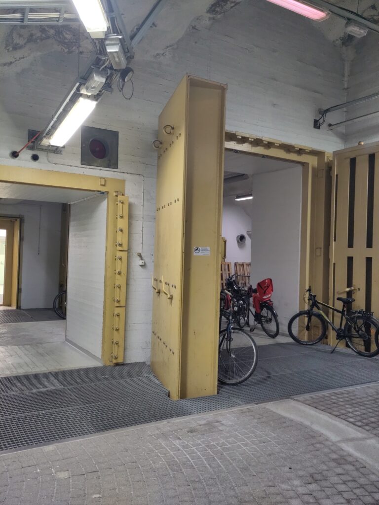 L’endroit est incroyable, il faut entrer littéralement sous terre, par une grande rampe d’accès. Le gymnase est gigantesque, il faut au moins 10 minutes de marche rapide pour arriver au bout. Il y a de nombreuses salles de muscu, d’arts martiaux, sauna… La salle de budo 4 où se tient le cours d’Achille, comporte trois tatamis séparés par des rideaux. Nous avons appris peu après que ce gymnase souterrain est un bunker auquel auront accès les habitants de la ville dont l’immeuble ne possède pas son propre refuge.