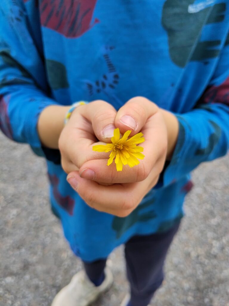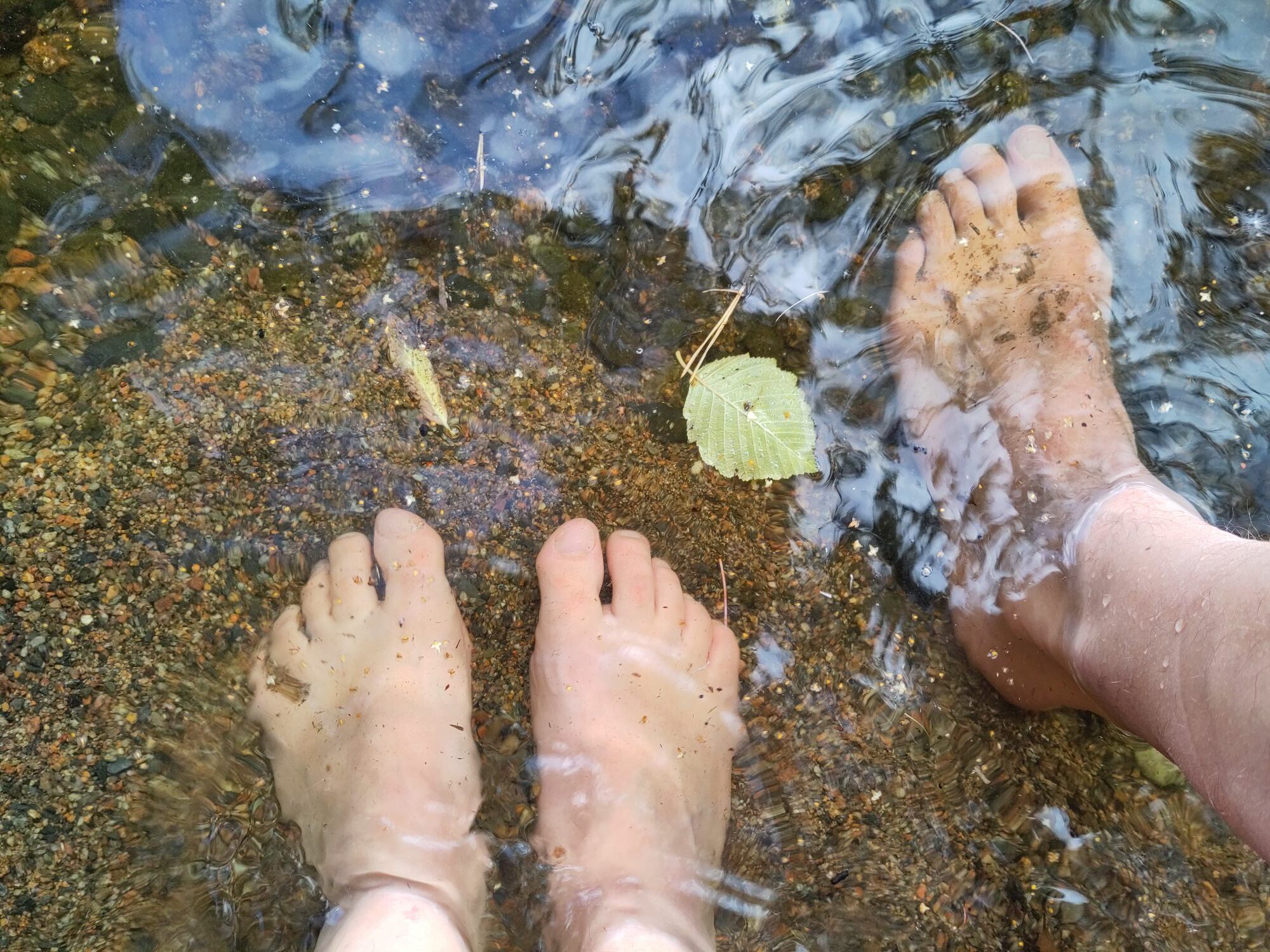 Avec le soleil, les clapotis de l’eau, les écureuils, ce n’était que ravissement. On ne s’est même pas fâchés quand Solal a glissé dans l’eau et que ses chaussures imperméables se sont remplies comme des seaux. Le pauvre a quand même eu peur, mais après un câlin il est vite reparti pieds nus sur le chemin.