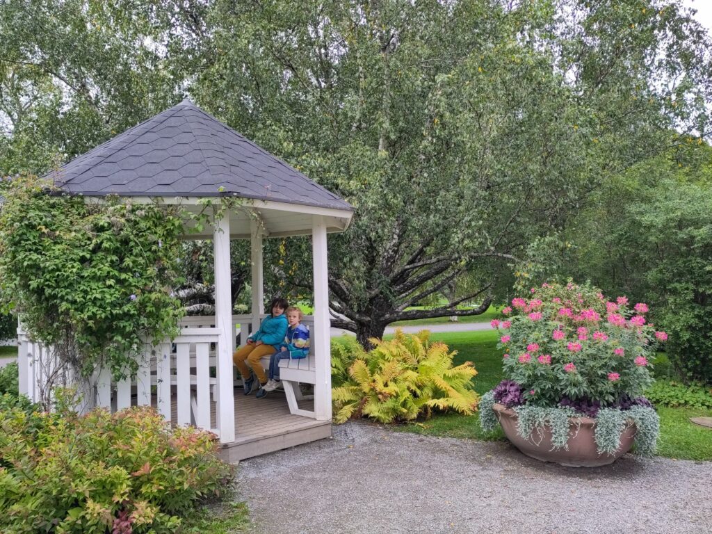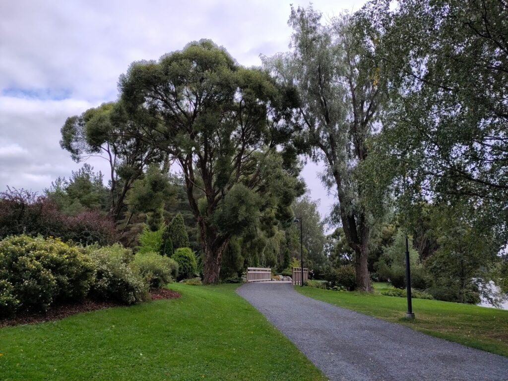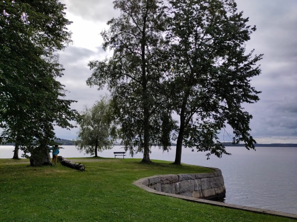 En adeptes du tourisme fortuit, on a bien aimé la promenade à l’arboretum, le vent transportait l’odeur des roses jusqu’à nos nasaux (et celle ces bonbons dans le sac) et on a essayé de voir où on habite au loin sur l’autre rive.