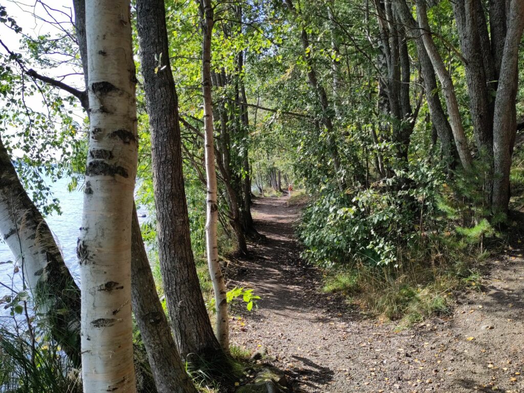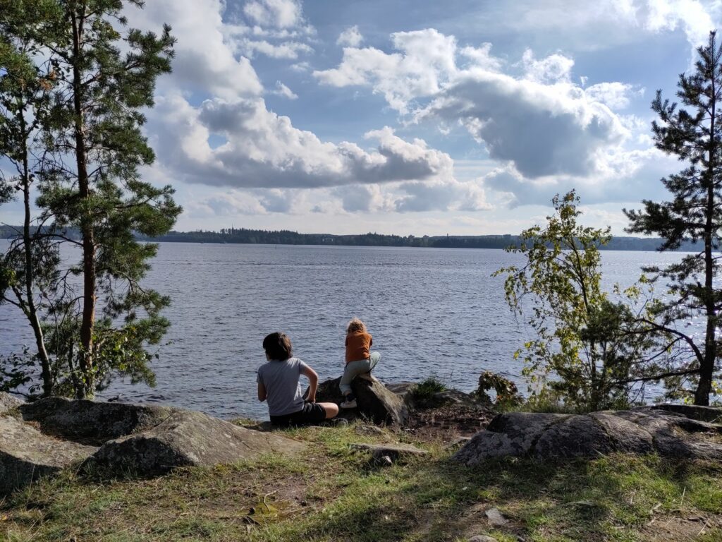 Après s’être pressés pour arriver à l’heure au minigolf où nous avions rendez-vous pour l’anniversaire d’une enfant de la classe d’Achille, et après s’être rendu compte que c’était en fait le lendemain, l’occasion était toute trouvée pour enfin aller découvrir le bord du lac Pyhäjarvi à deux pas de chez nous.